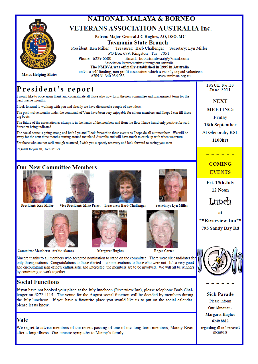Tasmania Branch Newsletter June 2011.